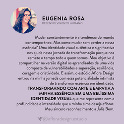 Me graduei em design de interiores e fiz uma especialização em design gráfico. Tenho mais de 10 anos de experiência com design, mas isso conta muito pouco sobre a minha essência profissional que é muito voltada para o desenvolvimento humano, comunicação, vínculo e intuição.